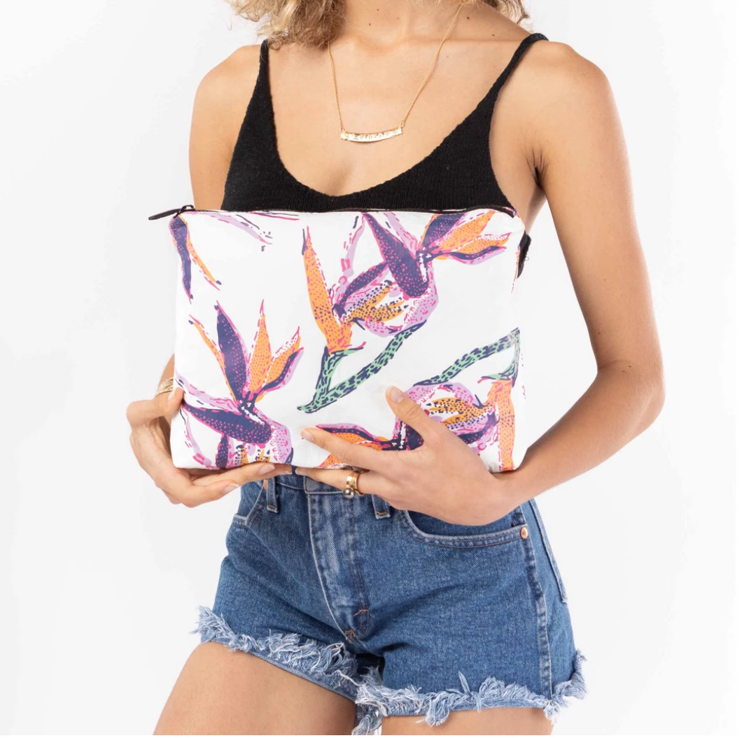 - The perfect companion for your beach tote, stash your sunscreen and tanning oil, or wet bikini in a mid-size pouch to keep your wet stuff separate!