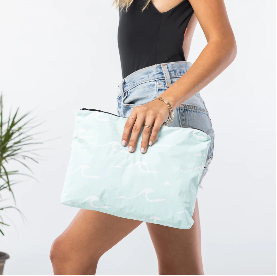 - The perfect companion for your beach tote, stash your sunscreen and tanning oil, or wet bikini in a mid-size pouch to keep your wet stuff separate!