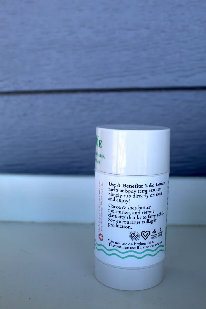 Use and Benefits: Solid lotion melts at body temprature. Simply rub directly on skin and enjoy!