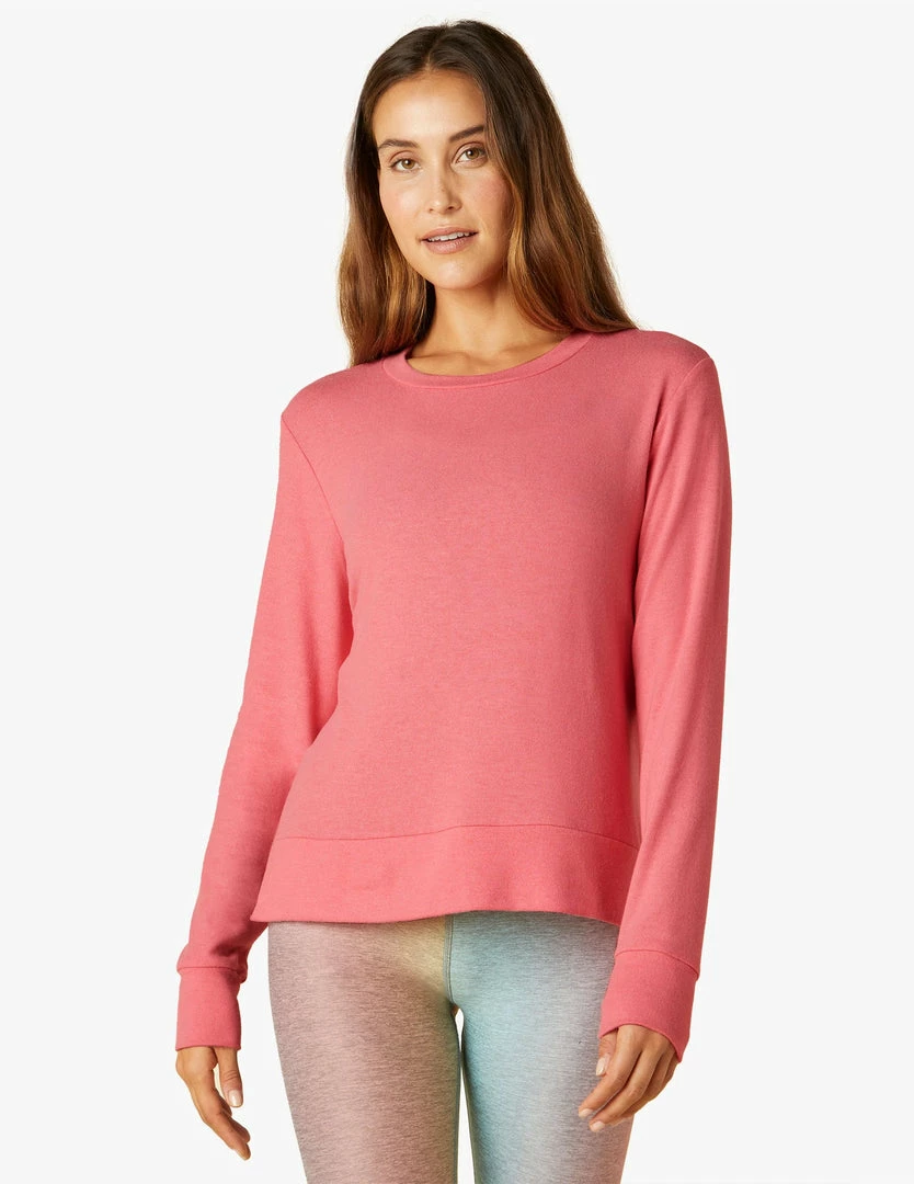 A timeless pullover look – with an edge, thanks to a high-low hem and slits at each side. Long sleeves, crew neckline and a boxy silhouette finish the look for a pullover that will keep you cozy post gym, pre-evening chill, and everything in between. Pair with biker shorts, high waisted leggings, or your favorite denim jeans to carry the look through every season.
