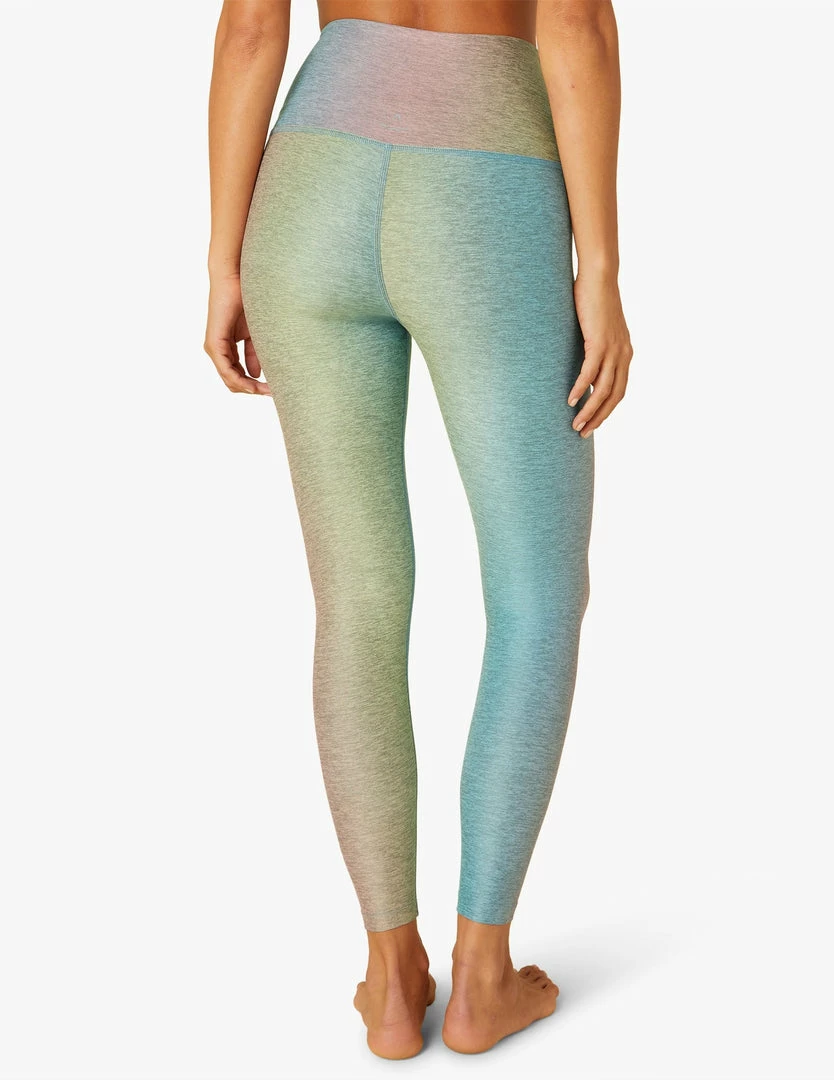 Kinda retro, kinda futuristic, and all kinds of comfy. Buttery soft Spacedye leggings printed with a rainbow prismatic look made by waterless printing for bolder style with a smaller carbon footprint. Featuring a 5″ high waistband, midi length, and no outside seams for the most streamlined look.
