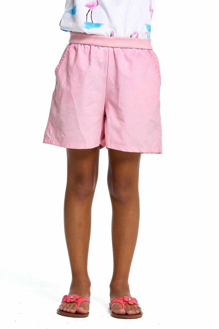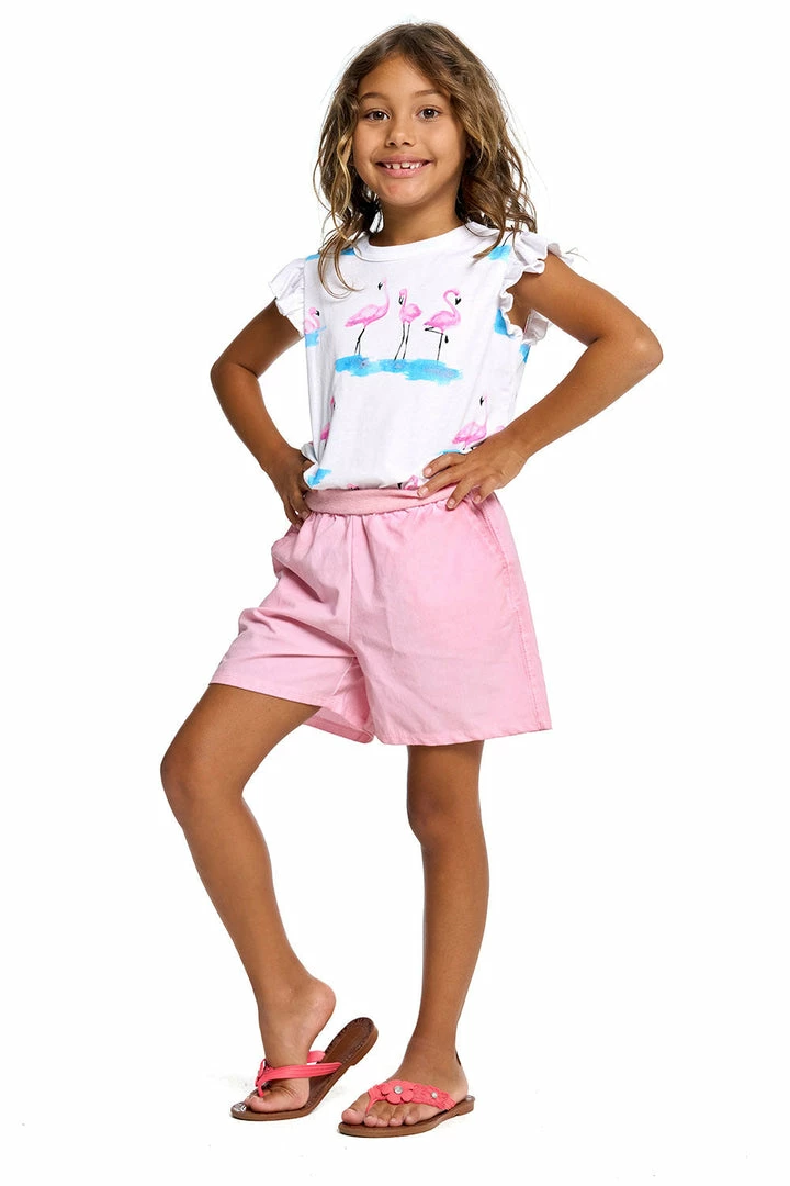 The feel of lounge with the look of luxe. Getting her dressed in the morning just got a whole lot easier with our Girls Heirloom Woven Flouncy Shorts, treated with a pink mineral wash for extra comfort (and coolness). Make it a matching moment by scooping up the tee to go with!