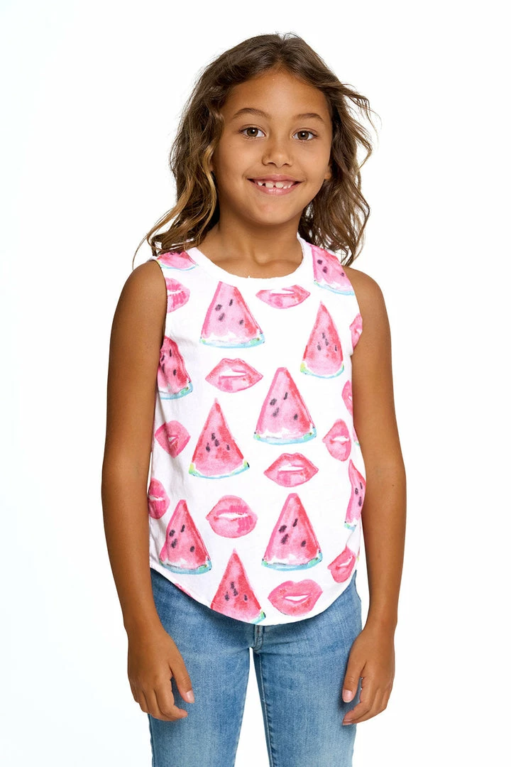 - Watermelon Lips Girls Recycled Vintage Jersey Muscle Tee