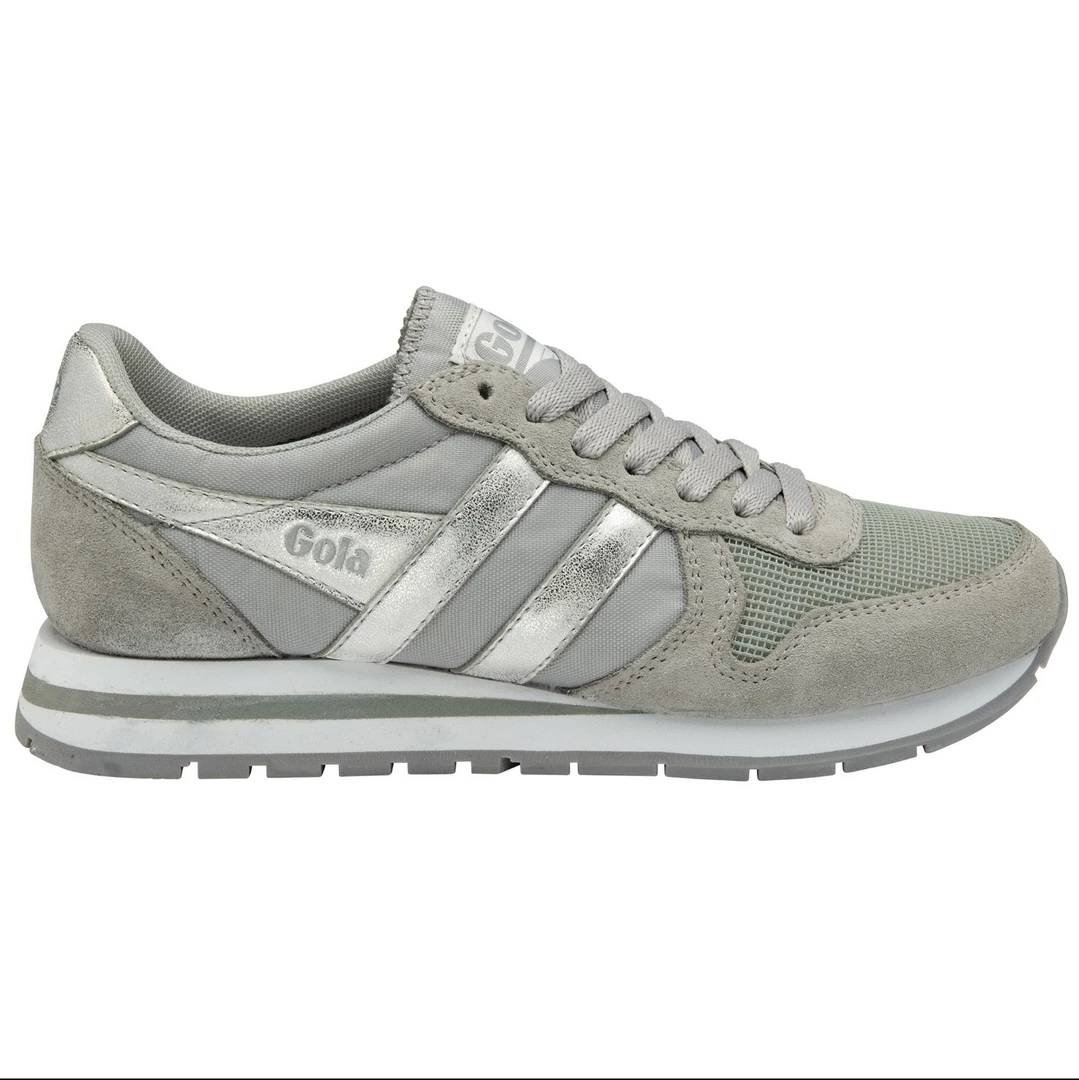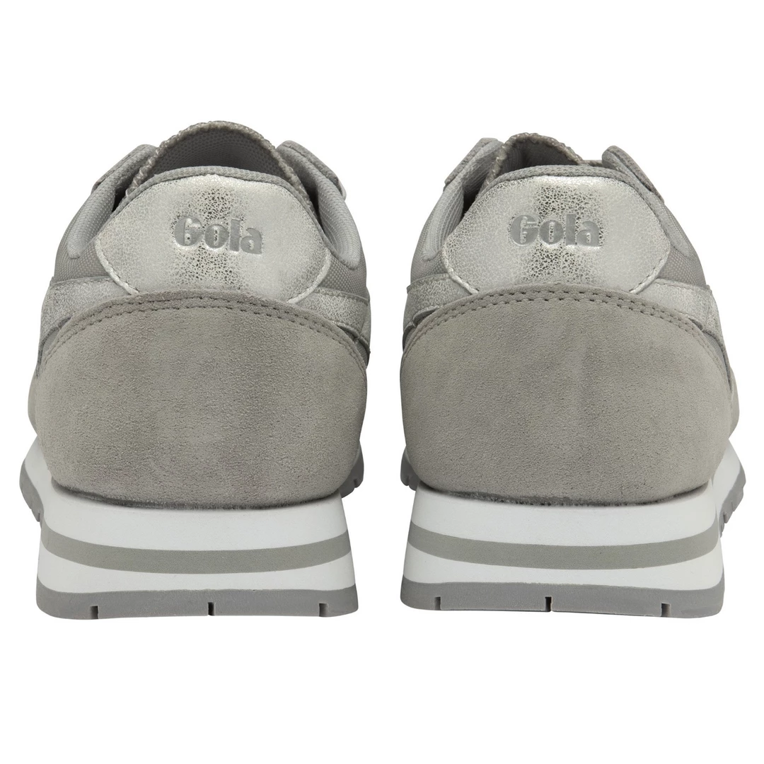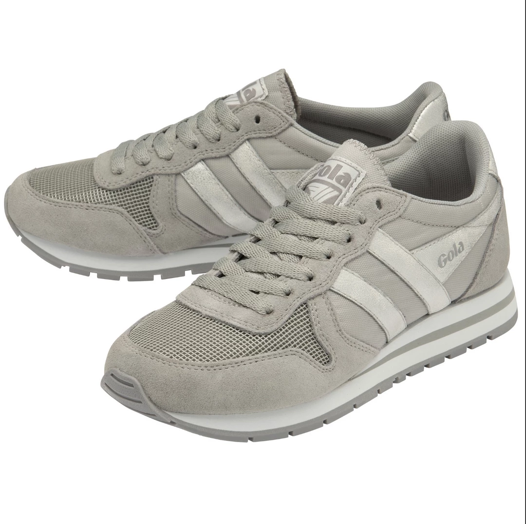 Gola Daytona Mirror is a vintage inspired jogger for women with a trend relevant execution. This reimagined version of Gola’s back catalogue style Daytona features an oversized EVA midsole, to give an authentic nod to Gola’s genuine sports heritage roots. The light grey nylon and suede upper is teamed with silver branding highlights to give a feminine take on this women’s vintage jogger style.