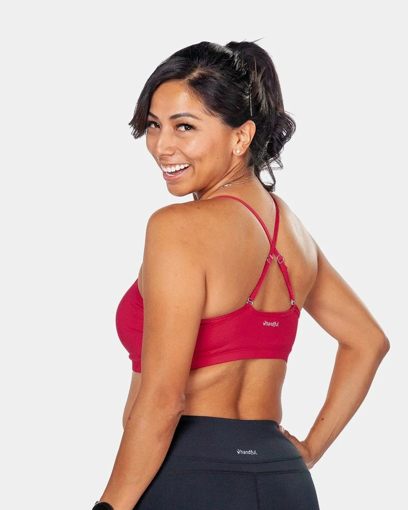 The Handful Adjustable Sports Bra is a washable soft, versatile, wear-everywhere moisture-wicking sports bra featuring pockets, removable pads, and straps that can be worn in three ways. It is the original do-it-all, all-day-long adjustable sports bra!