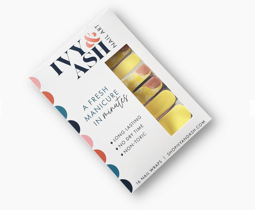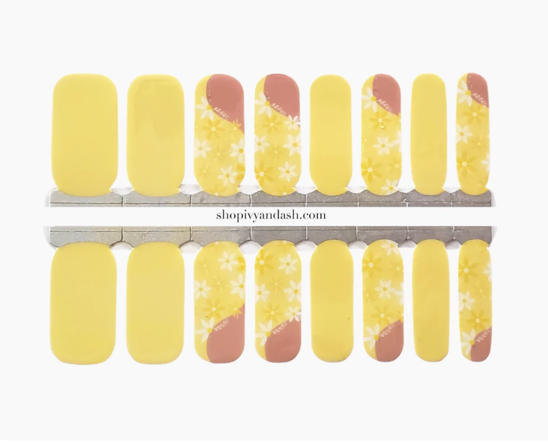Our Sunshine & Daisies Nail Wrap Set features a sunny solid pastel yellow that will brighten any day. Modern daisy French tip accents adds a touch of spring floral. A fresh new manicure in minutes. Ivy & Ash offers an eclectic selection of thoughtfully curated and designed nail wraps.