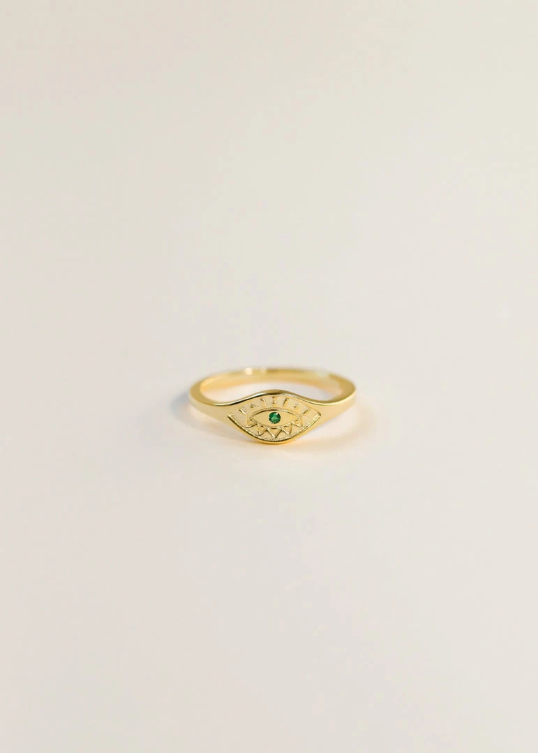 The evil eye is said to guard against misfortune while bringing good luck to the wearer and a small drop of rich emerald green CZ stone represents abundance, prosperity and growth. We crafted our collection of rings to make every day a reminder of joy, self-love, and to shine from within!