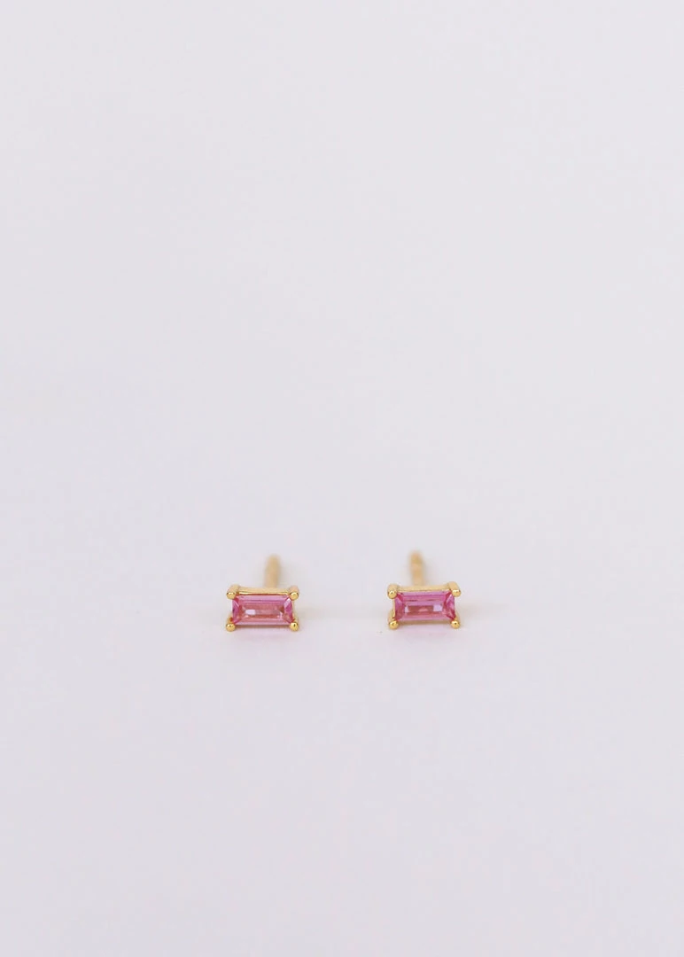 A classic baguette cut for just a flash of color. Made for stacking, layer in this definitive shape for a fresh new take. In delicate pink reminiscent of energetic spinel gemstones and rose petals.