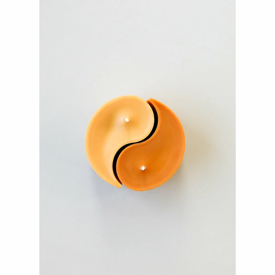 A palm-size candle of bright hues and good vibes, each hand-crafted and dyed with the utmost care. The yin and yang originated from the ancient Chinese concept of dualism, the beauty of opposing forces as fundamental compliments of one another, marking the interdependence in nature. A bold golden honey paired to a warm tan – our homage to the grand balancing act! Hand-molded Warm tan and golden honey 100% American grown paraffin soy wax Un-scented Measures approx 3 inches x 2 inches