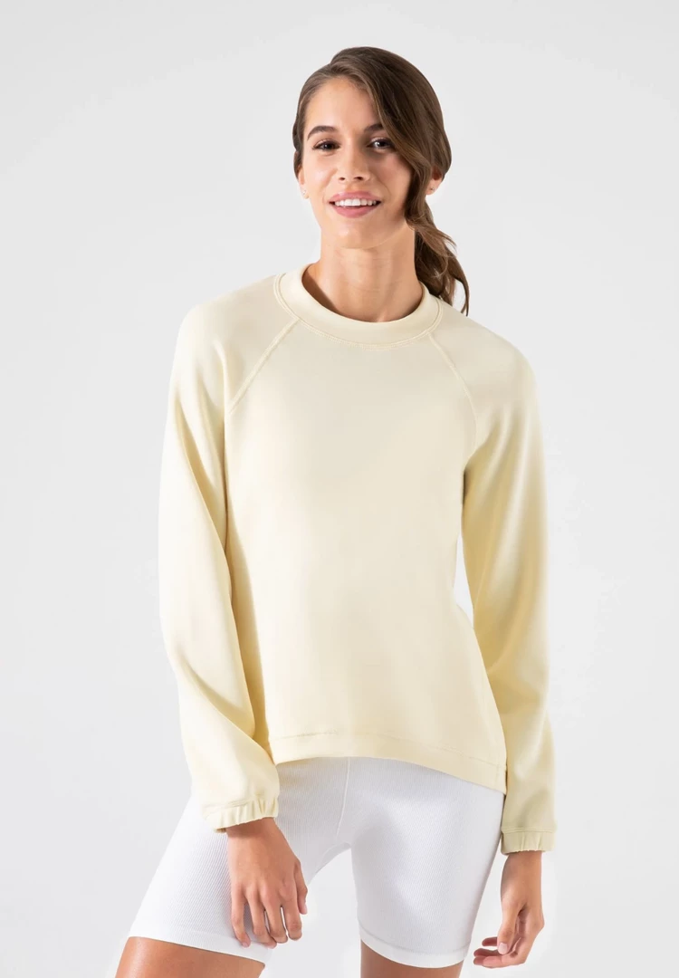 An ode to your regular sweat shirt but oh-so-soft. With a hi low hem, elastic cuff and flat lock detail it is the balance between sport, comfy and chic.