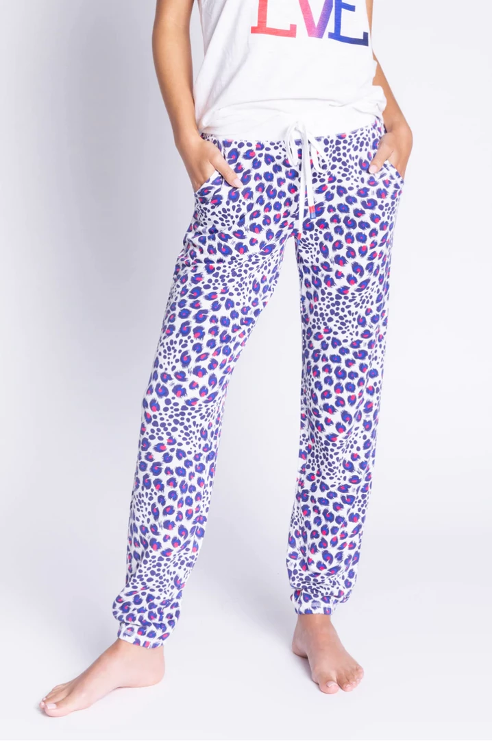 DESCRIPTION: When you’re feeling bold – step out in this jogger with a vibrant oversized leopard print, with a rib waist and easy fit.