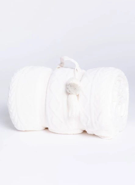 Ivory cable knit on one side of this blanket and a soft fleece on the other. Cozy up on the couch or next to the fireplace for all the winter vibes!