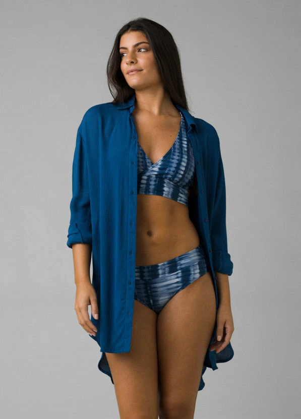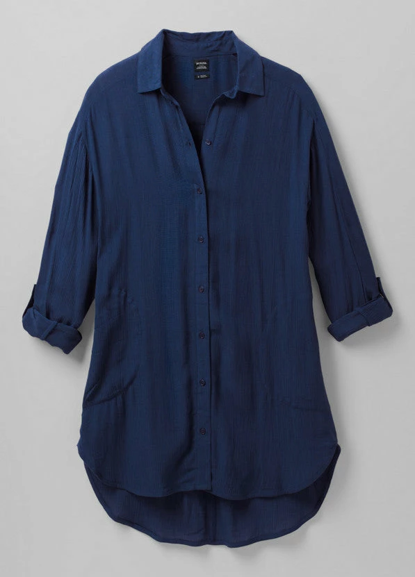 This long-sleeved tunic style has a comfortably relaxed fit and casual mid-thigh length, so it makes for a perfect swimwear cover up. On the other hand, it still looks buttoned up (pun definitely intended) for post-beach day drinks at a local brewery.