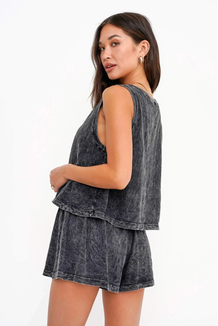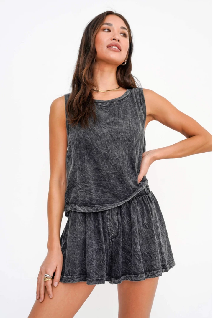 The Melbourne Tank features a high crew neckline, flowy silhouette, and is made in a 100% Cotton with our signature mineral wash dye technique.