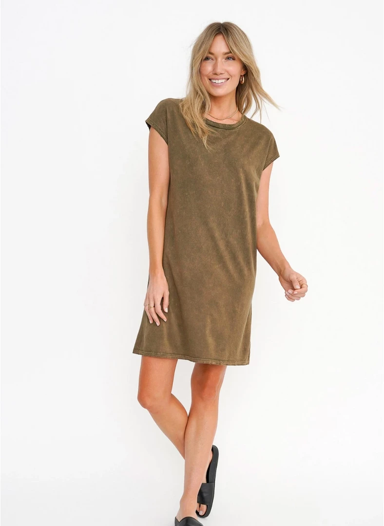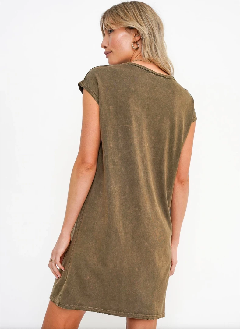 Project Social T Wave Washed Dress Army