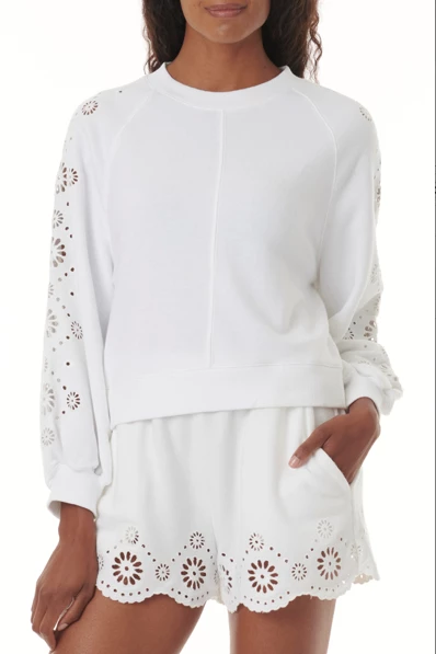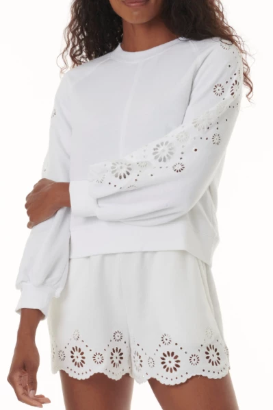 Splendid Brynn Eyelet Sweatshirt White