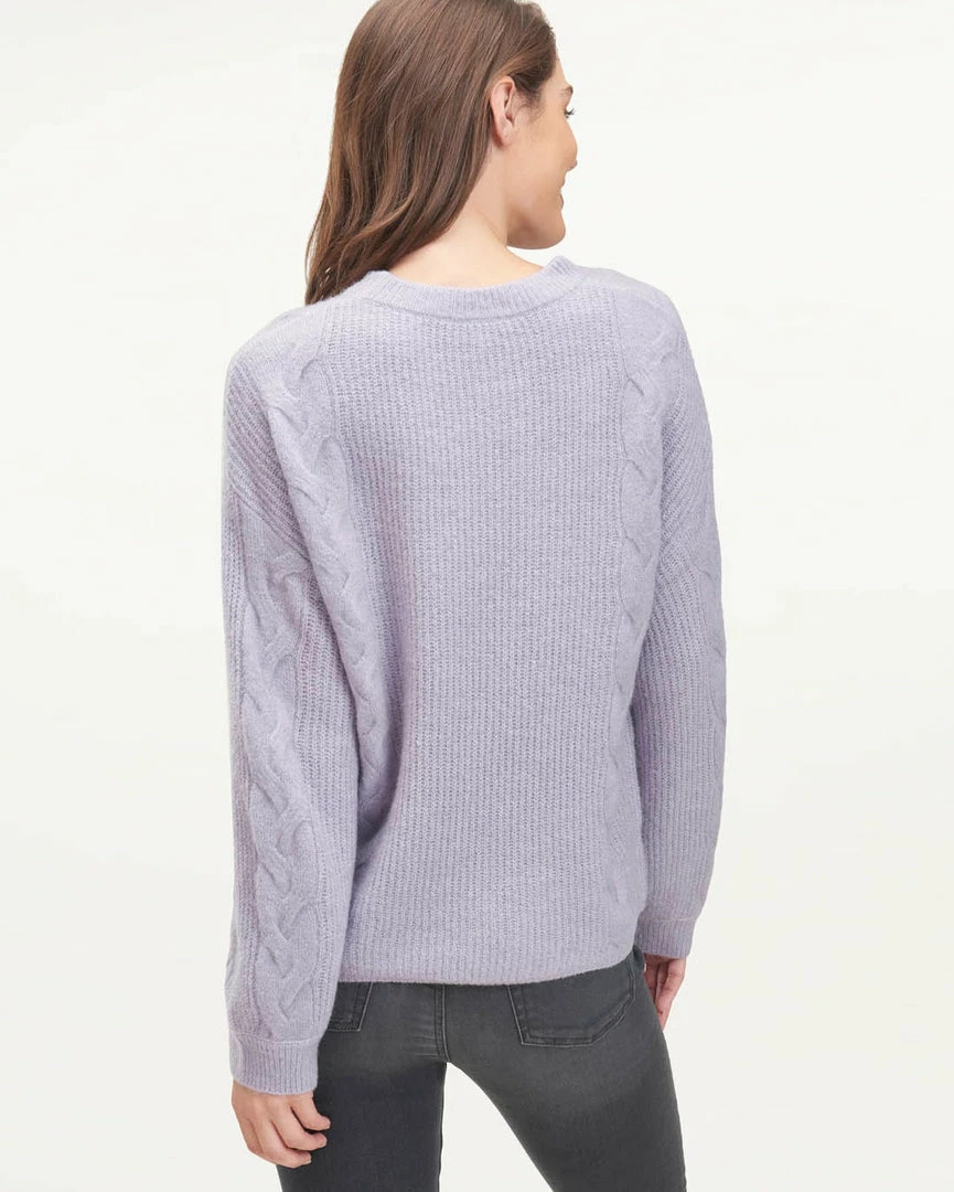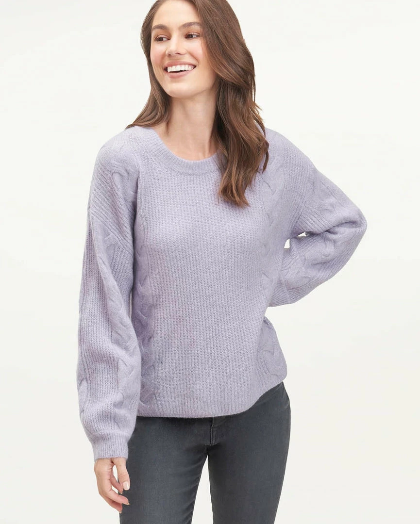 Our Natalia Sweater is crafted from Lodge yarn — a lightweight and fuzzy wool blend that’s not heavy or itchy making it a transitional, seasonless piece. Crafted with beautiful cable pattern, it’s the perfect ‘throw-it-on-with-jeans’ sweater.