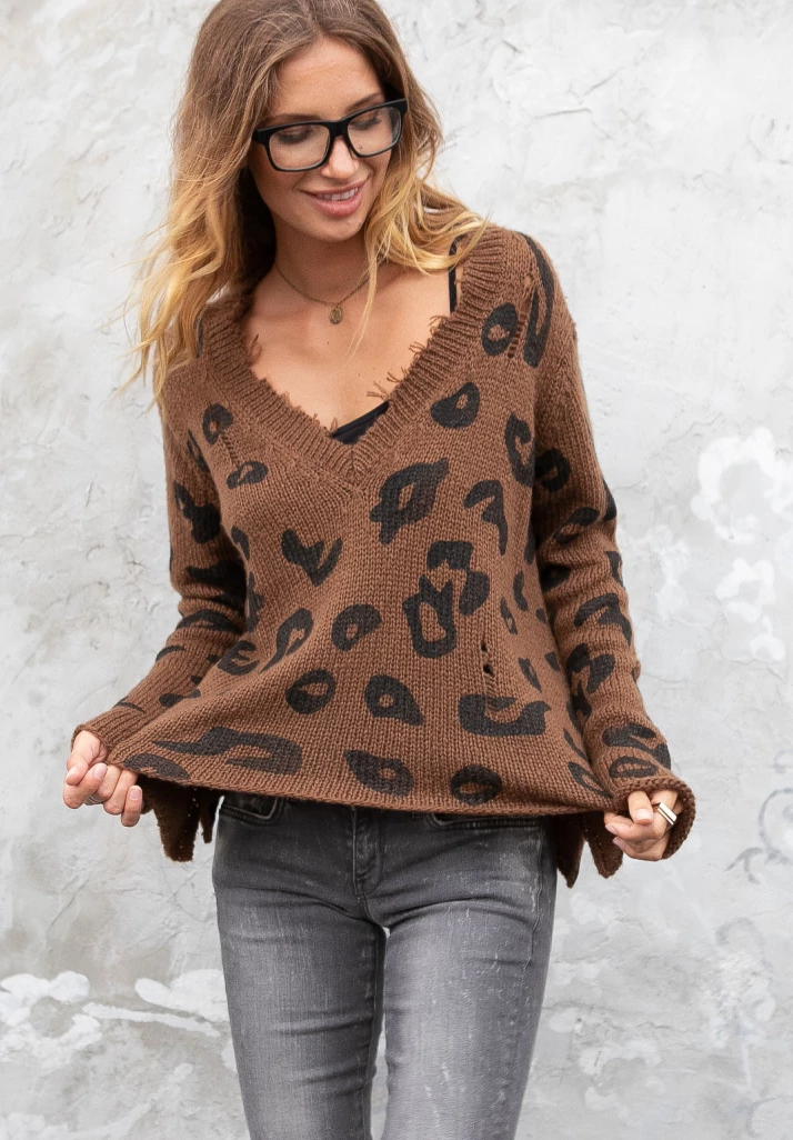 The Sofest V n-eck Sweater Slighlty Croped with Laid Back Distressed Details